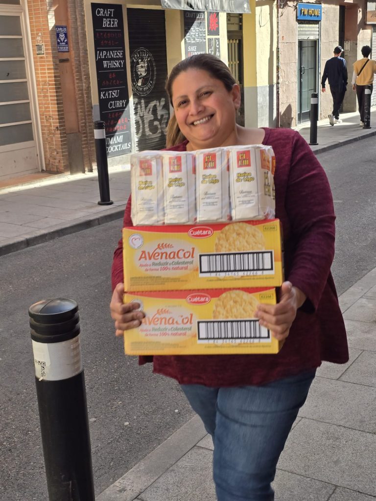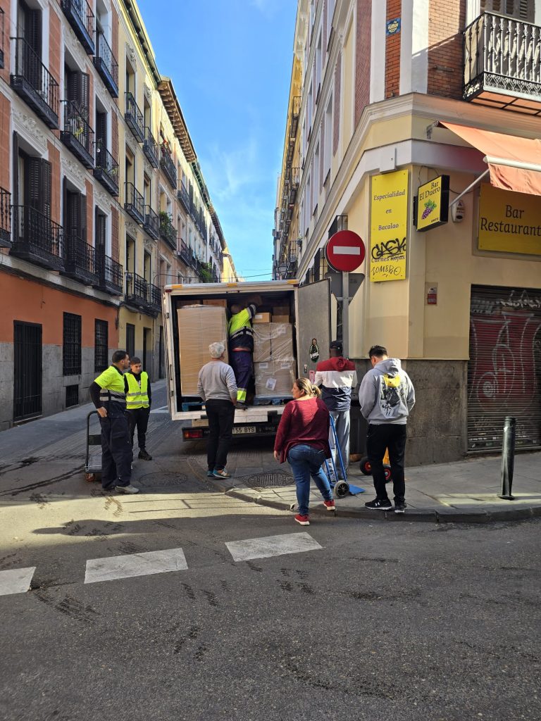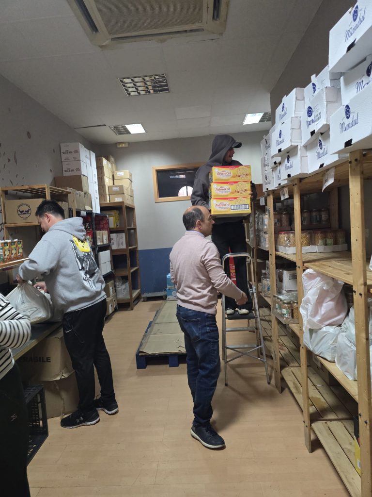 Tras la Semana Santa, de nuevo rellenamos el almacén con un nuevo camión de alimentos para poder seguir repartiendo alimentos durante este mes.