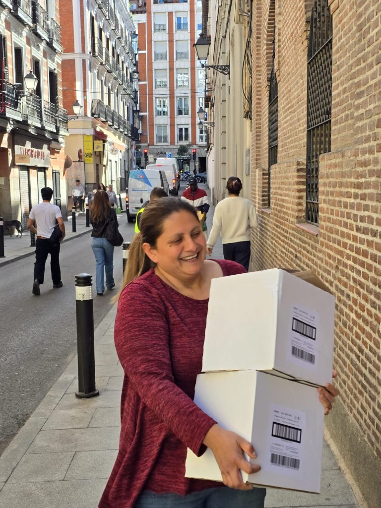 Tras la Semana Santa, de nuevo rellenamos el almacén con un nuevo camión de alimentos para poder seguir repartiendo alimentos durante este mes.